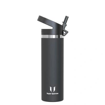 Super Sparrow Water Bottle Insulated 750ml Wide Mouth Metal SwivelSip Flask BPA Free, Leak Proof Ergonomic Straw Bottles for Work, Gym, Travel, Sports