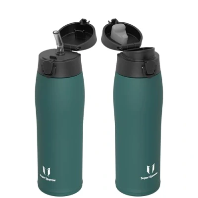 18/10 STAINLESS STEEL WATER BOTTLE- No longer rely on cheap plastic water bottles or inferior insulated water bottles that easily rust. Our drinks bottles are constructed of 18/10 medical-grade stainless steel, they are free of BPA or any other toxins, resist dents, cracks, and stains, and never absorb odors. Your daily water intake will be pure and sanitary. The double-walled vacuum insulation design ensures your favourite beverages stay cold for up to 12h or hot for up to 6h. DURABLE YET LIGHTWEIGHT - By innovative rotating thinning technology, the inner wall has reduced 35% weight without affecting the firmness of the travel mug. You will be surprised at such weight, almost close to the weight of a plastic water bottle of the same size. A lightweight design means you can do more, ideal for everyday tasks - stays hydrated on road trips, flights, or just a packed day of activities. EASY TO CLEAN - To avoid damaging the coating, it is recommended to wash the bottle by hand. We adopted electropolishing processing to provide smooth, easy-cleaning, and pleasing super-mirror surfaces for the thermal flask inner wall, so you can spend less time cleaning and more time focused on everything else. What's more, no more worries about the rust or corrode caused by the build-up of bacteria and product particles after being used for filling like juice, coffee, or other drinks. PREMIUM QUALITY DESIGN AND FUNCTIONALITY - We designed the Super Sparrow metal water bottle as both stylish and convenient to use. The special spill-proof top and ergonomically shaped to make one-handed use a breeze. Open with a one-handed push of a button, the vent on the lid allows the fast flow of water with effortless drinking, featuring the lock to make it 100% leak-proof and spill-proof, safe in a backpack, knapsacks, gym bag, in the hands of children, and your desk at the office. SUPERIOR QUALITY WITH "SUPER SPARROW" - Your satisfaction is guaranteed. Our bottle is ideal for hiking, cycling, biking, camping, running, yoga, or any other sports, at home, at the gym, or in the office. We provide full after-sales service for all Super Sparrow products to avoid manufacturer defects.