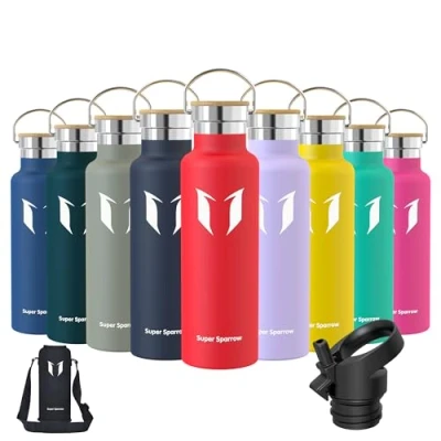 INSULATED STAINLESS STEEL WATER BOTTLE- No longer relying on cheap plastic water bottles that split and crack, our 18/8 stainless steel water bottle is manufactured from durable materials, for a bottle that can withstand your tough workouts! It can keep hot liquid warm for up to hours, and keep cold drinks chilled for up to 12 hours also ensures no sweating or condensation. Perfectly suited for Running, Gym, Yoga, office, Outdoors, and Camping. 2 INTERCHANGEABLE CAPS - (1) Sport Cap effortlessly delivers a high flow rate that makes it easy to drink from your bottle without removing the lid (2) Bamboo Cap enables you to carry it with ease or attach it to a backpack, for that it is convenient to take it with you on hikes, trekking, camping, or to the gym! BPA-FREE MATERIAL - The cheaper plastic water bottles leech chemicals and alter the taste of your drink when refilled. The Super Sparrow stainless steel water bottle is manufactured using premium 18/8 stainless steel BPA-free, so you don't have to worry about it being safe. PREMIUM QUALITY DESIGN AND FUNCTIONALITY - We designed the Super Sparrow water bottle to look and function differently from other Stainless Steel Water Bottles! It is ergonomically shaped to make one-handed use a breeze, perfect for hardwearing use. Customer-Oriented: We believe that the Super Sparrow stainless steel bottle stands out in the market for its quality and performance. We offer comprehensive after-sales support for all Super Sparrow products to ensure satisfaction and resolve any manufacturing defects.