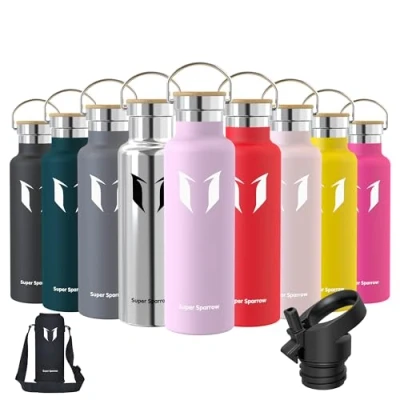 INSULATED STAINLESS STEEL WATER BOTTLE- No longer relying on cheap plastic water bottles that split and crack, our 18/8 stainless steel water bottle is manufactured from durable materials, for a bottle that can withstand your tough workouts! It can keep hot liquid warm for up to hours, and keep cold drinks chilled for up to 12 hours also ensures no sweating or condensation. Perfectly suited for Running, Gym, Yoga, office, Outdoors, and Camping. 2 INTERCHANGEABLE CAPS - (1) Sport Cap effortlessly delivers a high flow rate that makes it easy to drink from your bottle without removing the lid (2) Bamboo Cap enables you to carry it with ease or attach it to a backpack, for that it is convenient to take it with you on hikes, trekking, camping, or to the gym! BPA-FREE MATERIAL - The cheaper plastic water bottles leech chemicals and alter the taste of your drink when refilled. The Super Sparrow stainless steel water bottle is manufactured using premium 18/8 stainless steel BPA-free, so you don't have to worry about it being safe. PREMIUM QUALITY DESIGN AND FUNCTIONALITY - We designed the Super Sparrow water bottle to look and function differently from other Stainless Steel Water Bottles! It is ergonomically shaped to make one-handed use a breeze, perfect for hardwearing use. Customer-Oriented: We believe that the Super Sparrow stainless steel bottle stands out in the market for its quality and performance. We offer comprehensive after-sales support for all Super Sparrow products to ensure satisfaction and resolve any manufacturing defects.