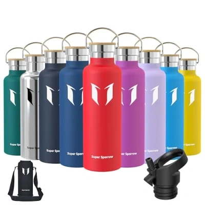 INSULATED STAINLESS STEEL WATER BOTTLE- No longer relying on cheap plastic water bottles that split and crack, our 18/8 stainless steel water bottle is manufactured from durable materials, for a bottle that can withstand your tough workouts! It can keep hot liquid warm for up to hours, and keep cold drinks chilled for up to 12 hours also ensures no sweating or condensation. Perfectly suited for Running, Gym, Yoga, office, Outdoors, and Camping. 2 INTERCHANGEABLE CAPS - (1) Sport Cap effortlessly delivers a high flow rate that makes it easy to drink from your bottle without removing the lid (2) Bamboo Cap enables you to carry it with ease or attach it to a backpack, for that it is convenient to take it with you on hikes, trekking, camping, or to the gym! BPA-FREE MATERIAL - The cheaper plastic water bottles leech chemicals and alter the taste of your drink when refilled. The Super Sparrow stainless steel water bottle is manufactured using premium 18/8 stainless steel BPA-free, so you don't have to worry about it being safe. PREMIUM QUALITY DESIGN AND FUNCTIONALITY - We designed the Super Sparrow water bottle to look and function differently from other Stainless Steel Water Bottles! It is ergonomically shaped to make one-handed use a breeze, perfect for hardwearing use. Customer-Oriented: We believe that the Super Sparrow stainless steel bottle stands out in the market for its quality and performance. We offer comprehensive after-sales support for all Super Sparrow products to ensure satisfaction and resolve any manufacturing defects.