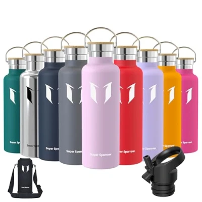 INSULATED STAINLESS STEEL WATER BOTTLE- No longer relying on cheap plastic water bottles that split and crack, our 18/8 stainless steel water bottle is manufactured from durable materials, for a bottle that can withstand your tough workouts! It can keep hot liquid warm for up to hours, and keep cold drinks chilled for up to 12 hours also ensures no sweating or condensation. Perfectly suited for Running, Gym, Yoga, office, Outdoors, and Camping. 2 INTERCHANGEABLE CAPS - (1) Sport Cap effortlessly delivers a high flow rate that makes it easy to drink from your bottle without removing the lid (2) Bamboo Cap enables you to carry it with ease or attach it to a backpack, for that it is convenient to take it with you on hikes, trekking, camping, or to the gym! BPA-FREE MATERIAL - The cheaper plastic water bottles leech chemicals and alter the taste of your drink when refilled. The Super Sparrow stainless steel water bottle is manufactured using premium 18/8 stainless steel BPA-free, so you don't have to worry about it being safe. PREMIUM QUALITY DESIGN AND FUNCTIONALITY - We designed the Super Sparrow water bottle to look and function differently from other Stainless Steel Water Bottles! It is ergonomically shaped to make one-handed use a breeze, perfect for hardwearing use. Customer-Oriented: We believe that the Super Sparrow stainless steel bottle stands out in the market for its quality and performance. We offer comprehensive after-sales support for all Super Sparrow products to ensure satisfaction and resolve any manufacturing defects.