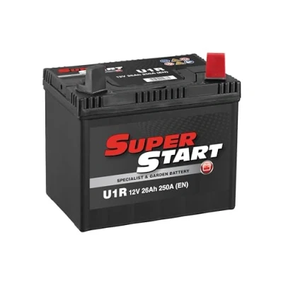 SPECIFICATION: 12V Replacement Battery; Capacity: 26Ah; Startup Power (CCA): 250A; Size (mm): 195 x 130 x 183 Weight: 7 kg SUPPLIED CHARGED & READY TO FIT: This Super Start U1R Battery utilises next generation battery technology developed with leading vehicle manufacturers MAINTENANCE FREE: Enjoy a hassle-free experience with this maintenance-free battery, which eliminates the need for regular topping-up VIBRATION AND SHOCK RESISTANT: Built to withstand vibrations and shocks to ensure durable and reliable operation in various driving conditions, making it ideal for demanding applications. ENHANCED SAFETY FEATURES: This Super Start U1R battery includes integrated flame arrestor & built in carrying handles for ease of use