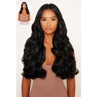 Effortless glam hair has never been so easy to achieve. Our 22’’ 5 Piece Curly Clip In Hair Extensions are the answer to all of your dreamy, voluminous hair goals in an instant. Weight: 250g Length: 22" Comes with 2 extra clips Suitable for all hair types Available in 32 colours The 5 pieces included are: 1 x 5 clips (weft is approx. 11.5inch/29cm) 1 x 4 Clips (weft is approx. 8.5inch/21.5cm) 1 x 3 Clips (weft is approx. 6inch/15cm) 2 x 2 Clips (weft is approx. 3inch/8cm) This set consists of 5 amazingly thick Premium Synthetic wefts which are pre-styled into defined curls, with no heat tools necessary. Prefer your curls more tousled and bouncy? Gently run through the hair with our LullaBellz Hollywood Wave Comb to style the prominent curls into volumised blowdry waves.