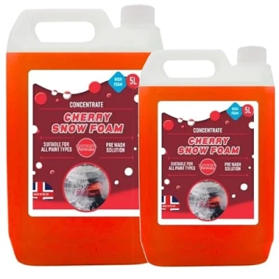 Heavy duty cherry snow foam highly effective and extremely powerfull, this snow foam is the perfect pre-wash giving you confidence to follow up with your contact wash. The solution contains cleaning agents which effectivly remove road traffic filmand other everyday soiling. Snow foam works very fast and quickly removes dirt, grime and insect deposits leaving you with a bright streak-free finish. Formulated with a combination of powerful cleaning agents, the snow foam effectively cuts through tough stains, insect residue, and road grime, leaving your vehicle crystal clear. Size: 5 Litres