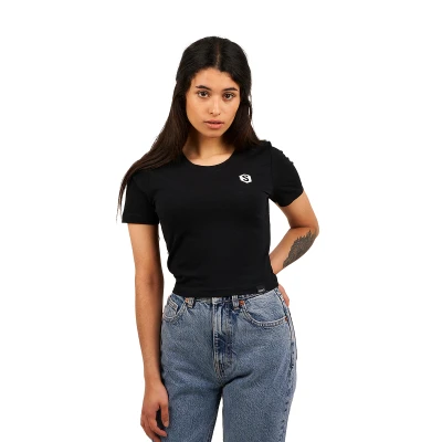 Short shot t-shirt Superb. Short sleeve. Round neckline with ribbed finish. Brand print on the front. Seams seen in tone. Composition: 95% Cotton, 5% Elastane. Care: - Wash at max. 40ºC. - Do not use bleach. - Iron at low temperature. - Do not dry clean. - Do not use dryer.