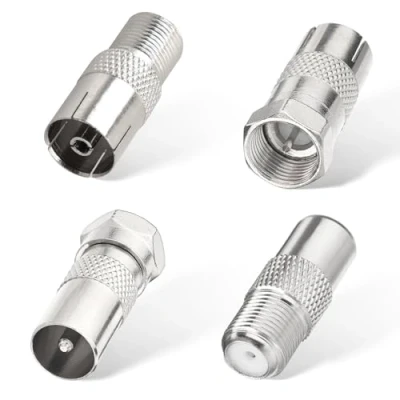 Item Specifics: Color (Silver); Material :Nickel-plated brass; Impedance: 75ohm,Low-loss. Feature: Designed to connect TV with coaxial output to cable with F-type input. Made of durable, oxidation-resistant material with low signal loss, high-speed transmission and long service life (no frequent replacement needed). Durability: ≥1000 cycles. Easy to install: Quick-connect by screwing the connector into the device interface, no soldering or crimping needed. Plug-and-play, it delivers stable, zero-latency HD signal transmission. Application: For Antenna Cable, Aerial Cable, Satellite Cable etc. Compatible with TV, Modem, Router, DVB-T 2, Satellite Antenna, Flat Antenna, Set-top Box, Satellite Receiver, Digital Audio Video Devices. Before you buy,please confirm whether the connector supports your device. Package:4Pcs F-type to TV adapters(1pcs F female to TV pal female, 1pcs F male to TV pal female, 1pcs F male to TV pal male, 1pcs F female to TV pal male).