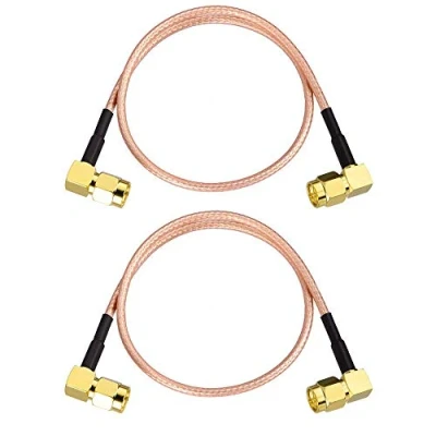 Cable Type:RG316; Connector:SMA Male to Male(Both Right Angle); Impedance:50 ohm; Length:30cm/1ft; Package List:pack of 2pcs cables. Connector:Made of gold-plated brass, which ensures a lower VSWR for higher transmission efficiency while providing strong corrosion resistance. It is easy to install, has strong vibration resistance and outstanding electromechanical performance. Durability: ≥1000 cycles. Cable:RG316 cables are lightweight and heat-resistant, while combining good conductivity and signal transmission. It allows transfer of signals over large distances, supports higher frequency use and minimum signal loss. Its flexible and durable weatherproof PVC jacket allows it to be used both indoors and outdoors. Compared to RG174 cable, RG316 cables have better performance in terms of signal attenuation and transmission delay. Application:For 3G 4G LTE Antenna, WiFi Antenna, FPV Antenna, GPS Antenna, WiF/4G LTE Router, RTL-SDR USB Dongle, ADS-B Receiver, Gateway Modem, Network Analyzer, Antenna Analyzer, Spectrum Analyzer, Ham Radio,USB Tuner, Network System, FPV Devices, Wireless LAN Device etc. Widely used in 5G Testing, FPV Drone Systems, Radar Applications and Medical Equipments. Never worry about any product quality issues. We offer 1 Month replacement warranty. If you unfortunately get a defective one, please seek assistance from customer service.