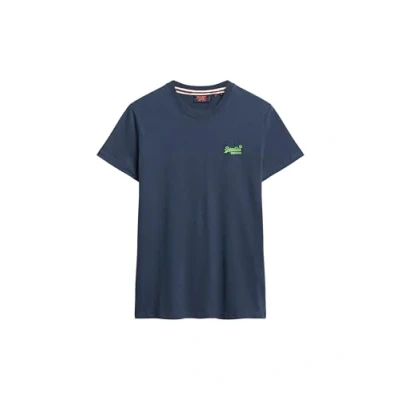 Superdry Essential T-Shirt Navy Superdry Essential T-Shirt Navy in de kleur Blue en Dark Blue met een pasvorm Modern-Fit is gemaakt van Cotton met een Brand logo en Plain dessin en Short sleeves.
