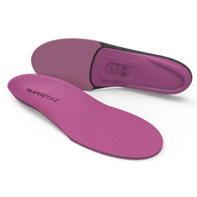 FIT PROFILE: Medium volume/Medium profile insoles; Volume refers to the amount of space these comfortable Superfeet Berry insoles for women will take up in your shoe, whereas, the Profile is how much shape you can expect to feel under your foot REINFORCED STABILISER CAP: The base of these Superfeet orthotic shoe inserts support the rearfoot and provides structure and stability to the foam layer DEEP HEEL CUPS: These high arch support insoles feature a deep, narrow heel cup that helps support the foot during high-impact activities and long distances SUPERFEET SHAPE: Designed with a slimmer heel and an arch length to fit the female foot, the signature Superfeet arch support shoe insert shape helps stabilise and support the foot, which can help increase stress relief on feet, ankles and knees HIGH-IMPACT FOAM FOREFOOT: The soft, bouncy foam at forefoot provides great shock absorption during high-impact activities like walking, running, or playing on hard, unforgiving surfaces
