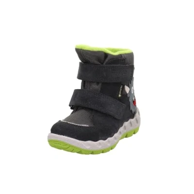 Style: Superfit Boys Icebird Warm Gore-Tex Stiefel, available in a stylish Grau Hellgrün 2010 color Material: Made of high-quality Suede Leather and Thermoplastic polyurethane (TPU) for durability and comfort Waterproof: Equipped with Gore-Tex technology, ensuring dry feet in wet and snowy conditions Comfort: Features a warm lining and a wide fit, providing optimal comfort for little kids Versatile: Suitable for various occasions, including parties, thanks to its appealing cartoon pattern