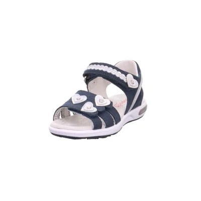 Stylish Design: The Superfit Emily Sandal comes in a beautiful blue color with an ankle-strap style and a closed toe, making it a perfect choice for little girls who love to look fashionable High-Quality Materials: Made with suede leather and thermoplastic rubber sole, these sandals offer both durability and comfort for your child's feet. The leather insole ensures a soft and cozy feel, while the outer material gives a premium look and feel Comfortable Fit: These sandals are designed for little kids with a medium width and are available in UK size 10. The hook and loop closure system ensures a snug fit, making it easy for your child to put on and take off the sandals Versatile Uses: These sandals are perfect for walking and can be worn on various occasions, including weddings and casual outings. The hearts pattern adds a playful touch, making it a fun accessory for your child's wardrobe Superior Craftsmanship: Manufactured by Legero Schuhfabrik GesmbH, these sandals are made with EUflexible technology, ensuring flexibility and comfort for your child's feet. The flat heel type makes it easy for your child to walk and run around comfortably