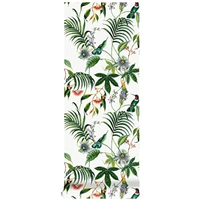 WallpaperDirectHummingbirds nestle in vibrant tropical foliage, set against a white contrasting background. Bold colours and a fine texture make this design ideal for bringing life and dimension to your walls. Shown here in the white colourway.