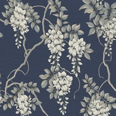WallpaperDirectBring a sense of freshness with this beautiful floral paper featuring delicate hanging wisteria. Shown here in the navy colourway - other colourways available.