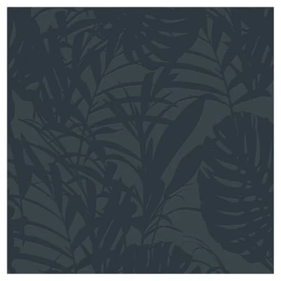 WallpaperDirectA contemporary tropical palm leaf design, with a light texture and rich navy blue hues. Shown here in the blue colourway.