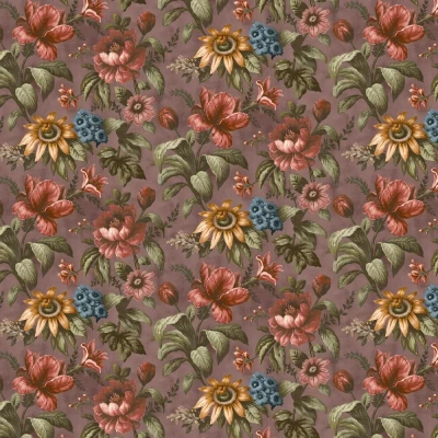 WallpaperDirectA flamboyant and dramatic all over floral design evoking a rich vintage feel, with large scale flowers.