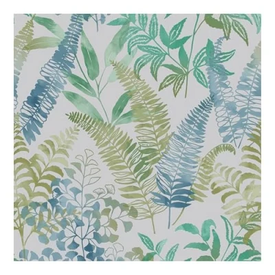 WallpaperDirectA lightly textured wallcovering with an all over jungle style leaf pattern. Shown here in the Aqua blue and green colourway.