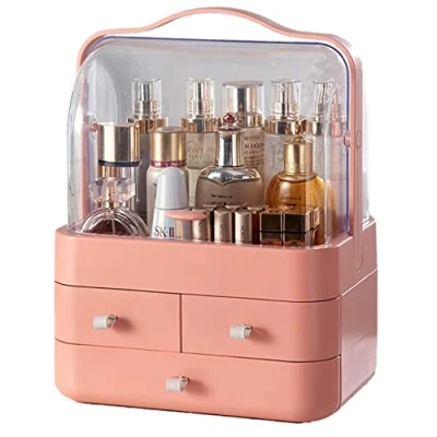 SuperGift.com Makeup Organiser, Cosmetics Skincare Organisers Box, Make up and Storage for Vanity with Lid Drawers Countertop, Bathroom table (Pink)