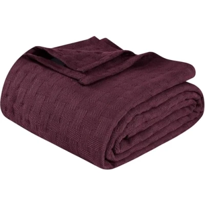 Superior 100% Cotton All Season Blanket, Basket Weave Design, Soft, Comfy Cover for Bed, Bedding, Bedroom, Couch Throw, Lounging, Modern Boho Medium Weighted Blankets, Plum
