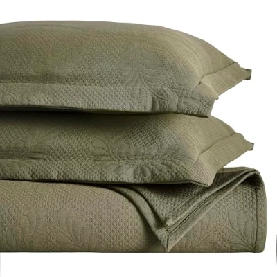 Superior 3 Piece Cotton Bedspread Set, Home Bed Decor, Decorative Spread, 2 Pillow Shams, Medium Weight Blanket, Matelasse Coverlet, Bedding Essentials, Peploi Collection, King, Olive Green