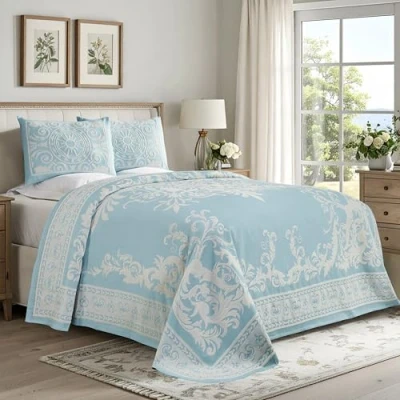 ALL-SEASON COMFORT: Made from a luxury blend of 70% Cotton and 30% Polyester, this bedspread is lightweight while providing maximum warmth and comfort; perfect for year-round use, bedspread serves as a decorative accent or an added layer on colder nights INTRICATE DESIGN: Centered with a timeless medallion design framed within an elaborate border, this jacquard bedspread set incorporates rich texture and pattern to create dimension and charm, bringing both character and comfort to your bedroom TAILORED FINISH: Available in an array of colored designs and sizes, this set comes with 2 matching pillow shams (1 for Twin size) for an elegant, ultra-soft bedding ensemble; generously sized bedspread hangs all the way to the floor for a luxurious feel MACHINE WASHABLE and EFFORTLESS CARE: This luxurious bedspread set is machine washable; wash on a cold, delicate cycle; non chlorine bleach; tumble dry low; please follow the instructions on the care label for the best results EXCELLENT GIFT: Our designs match a variety of styles and make great gifts, perfect for friends and family; We're committed to make products safer for you and safer for the world; OEKO-TEX certified for safety and sustainability