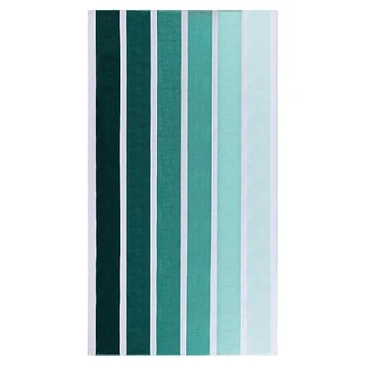 Superior Cotton Beach Towel, Absorbent Oversized Towel for Swimming, Pool, Camping, Bathroom, Shower, Large, Quick Drying Basics, Adult, Kids, Colorful, Faded Stripes Collection, 34" x 64", Green
