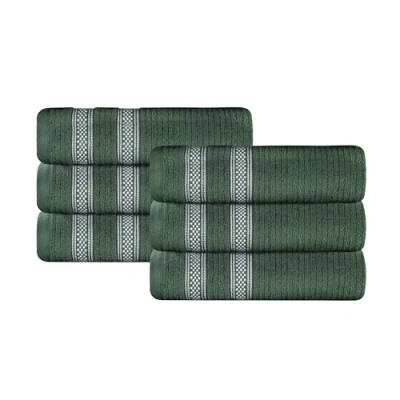 Superior Cotton Hand Towel Set, Zero Twist, Ribbed Geometric, Small Towels, Plush Soft Absorbent Bathroom Basics, Home Essentials, Spa, Salon, Hotel, Kitchen, Luxury Quick Dry, Set of 6, Forest Green
