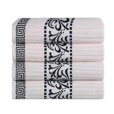 Superior Decorative 4 Piece Bath Towel Set, Greek/Floral Decor for Bathroom, Guest Bath, Spa, Household Essentials, Premium Absorbent Cotton, Athens Collection, Fast Drying Towels, Ivory Black