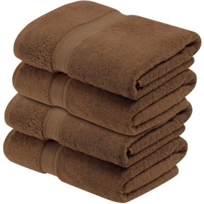 Superior Egyptian Cotton Bath Towel Set of 4, Ultra Soft Luxury Towels, Thick Plush Essentials, Absorbent Heavyweight, Guest Bath, Hotel, Spa, Home Bathroom, Shower Basics, Chocolate Dark Brown