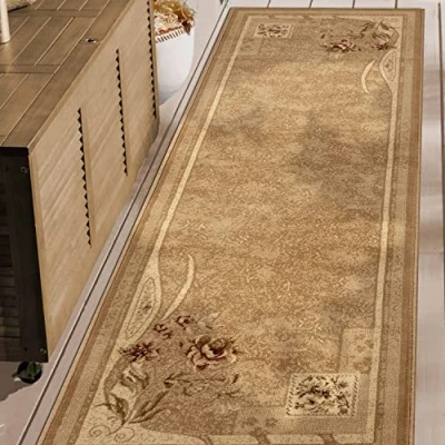 Superior Indoor Runner Area Rug with Jute Backing, Modern Floor Decor for Home Hallway, Living Room, Cover, Entryway, Bedroom, Minimalist Floral Block, 2' 7" x 8', Taupe