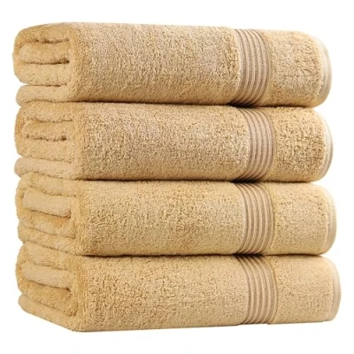 Superior Luxurious Soft Hotel & Spa Quality Bath Towel Set of 4, Made Long Staple Combed Cotton Gold, 30" x 54" each