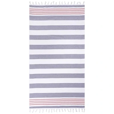 OPULENT COMFORT: Crafted from ultra-soft Cotton; oversized beach towel is lightweight and breathable; flatweave construction on one side with an absorbent terry weave reverse offers a smooth, comfy surface for lounging WHIMSICAL DESIGN: Perfect for all aquatic activities; towel is lightweight to fit into any beach bag or suitcase; generously sized to get you dry quickly; towel features a stripe design in an array of bright color options with tassel details GORGEOUS STYLE and APPEALING COLORS: Towel measures 35" wide x 68" long; this set comes in your choice of Sunset, Key West, Dusky Blue, Cerise, and Baked Apple color options to make this a must-have summer accessory; towel folds to fit into any beach bag or suitcase CARE INSTRUCTIONS: Machine washable; be sure to follow care label instructions for best results SATISFACTION : Our products are backed by loyal guest service; our designs match a variety of styles and make great gifts; perfect for bridal, house-warming, or any holiday; update any room in your home, dorm, or apartment in an instant