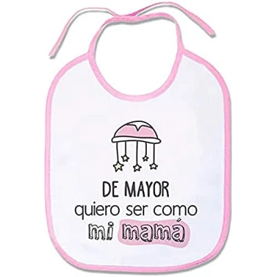 Supermolon 00785 "De Mejor Quiero Ser Like My Mom" Baby Bib with Laces, Pastel Pink, Unisex
