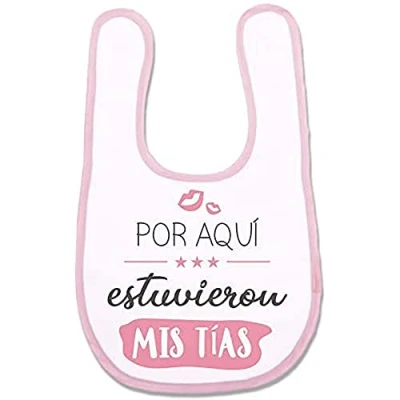 Supermolon 02314 "Por Aquí Estueron My Aunties" Baby Bib with Velcro, Pastel Pink, Unisex