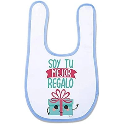 Supermolon 03090 “Soy Tu Mejor Gift Baby Bib with Velcro, Sky Blue, Unisex