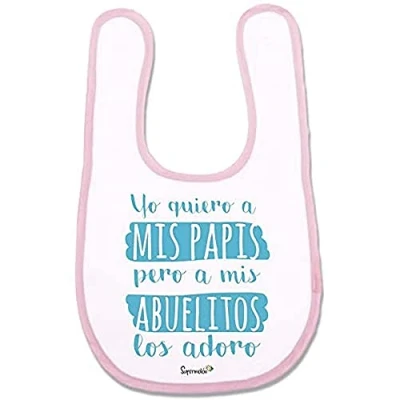 Supermolon 03557 “Yo Quiero A Mis Papis But My Grandparents The Adoro Baby Bib with Velcro, Pastel Pink, Unisex