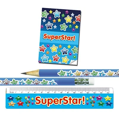 Amazon 36 piece Stationery Set 12 pencils, 12 rulers and 12 notepads Each features a matching SuperStar design Ready to divide up and distribute as Christmas gifts Ideal for use in schools and clubs