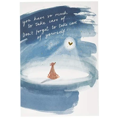 Send a little reminder to someone who needs it that self-care matters too, with this sweet and thoughtful card from Hallmark's lovely new 'State of Kind' collection Printed on 100 Percent Recyclable, FSC Certified Board Blank Inside for Your Own Message Features Gold Foil Design Details and a Plain White, Hallmark Branded Envelope Measures 17.3 cm by 11.9 cm, Within Standard UK 'Letter' Size Limits