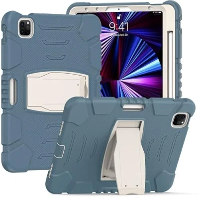 Base: a sturdy, integrated base that slides in and out easily. You can access your favourite shows, movies and games anytime, anywhere. KIDS CASE: The three-layer design combines a high quality shock-resistant silicone outer layer with a hard PC shell, making it perfect for kids and can withstand accidental drops, bumps and knocks. The perfect tablet accessory: use your iPad flexibly for work, study or on the go, perfect for children, students, teachers or engineers. It is a gift for children, children, spouse, friends, family and friends. Precise cut-outs in the case: provides easy access to all iPad's ports, touch ID features, sensors, speakers and cameras. It is also a thoughtful and practical gift for boys, girls, teens, older children, family and friends. Cover with built-in lectern function: offers two different angles for typing, playing games or watching videos. The grippy muscle bumps are designed for children and schools.