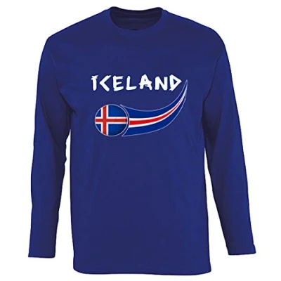 Supportershop Men Iceland Long Sleeve T shirt Blue, Medium