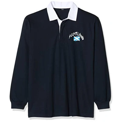 Supportershop Rugby Polo Shirt Scotland LS Navy Long Sleeves Unisex Adult, FR: S (Manufacturer's Size: S).