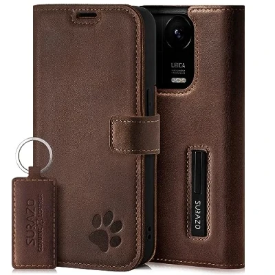 Surazo Leather Wallet Mobile Phone Case Compatible with Redmi Note 13 Pro 5G Flip & Fold Smartphone Stand RFID Blocker Magnet Closure, 3 Slots for Bank Cards Handcrafted European