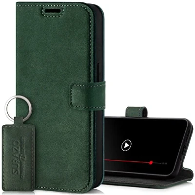 Surazo Leather Wallet Mobile Phone Case Compatible with Samsung Galaxy A34 Flip & Fold Smartphone Stand RFID Blocker, Magnet Closure, 3 Slots for Bank Cards Handcrafted European