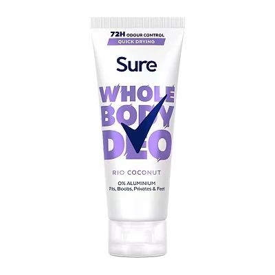 Sure Rio Coconut Whole Body deodorant women's cream with a fresh & tropical fragrance for 72 hour odour control 75 ml