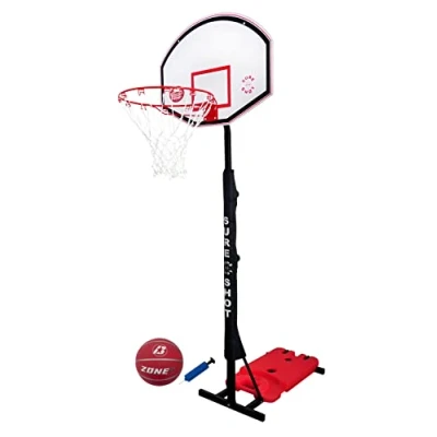 The Easi Shot Basketball Hoop and Ball set from Sure Shot - one of the leading brands in Basketball Set comprises of a youth size basketball unit, one Baden Zone size 5 basketball and a ball pump Telescopic Height settings between 1.5m to Official NBA Height of 3.05m. Pole padding provided for safety 35" x 24" (90cm x 60cm) Backboard with all white finish - combined with a 18" (45cm)solid steel ring Sure Shot - Official Partner of Basketball England and the British Basketball League