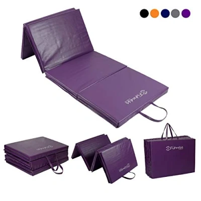 IDEAL FITNESS MAT - Superior cushioning and comfort makes this mat a must have. Yoga; Gymnastics; Cross Fit; Pilates; Martial Arts; Gym exercises or even for Stretches; this is your go to mat HIGH QUALITY OUTER MATERIAL - made from a superior non-slip, wipe clean, water and sweat resistant, and durable toxin free PU leather. This offers excellent safety and hygiene every time you exercise SUPERIOR COMFORT - High density foam inner used for superior comfort and cushioning provides extra support to joints and spine. PERFECT DESIGN FOR STORAGE - the ergonomically designed foldable mat implements a four-fold system making it easy for storage in a cupboard, car boot or in storage units at the gym. PORTABILITY - Four folds, coupled with robust carry handles, makes this mat incredibly portable. The compact design makes transportation easy.
