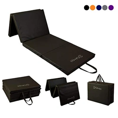 IDEAL FITNESS MAT - Superior cushioning and comfort makes this mat a must have. Yoga; Gymnastics; Cross Fit; Pilates; Martial Arts; Gym exercises or even for Stretches; this is your go to mat HIGH QUALITY OUTER MATERIAL - made from a superior non-slip, wipe clean, water and sweat resistant, and durable toxin free PU leather. This offers excellent safety and hygiene every time you exercise SUPERIOR COMFORT - High density foam inner used for superior comfort and cushioning provides extra support to joints and spine. PERFECT DESIGN FOR STORAGE - the ergonomically designed foldable mat implements a four-fold system making it easy for storage in a cupboard, car boot or in storage units at the gym. PORTABILITY - Four folds, coupled with robust carry handles, makes this mat incredibly portable. The compact design makes transportation easy.