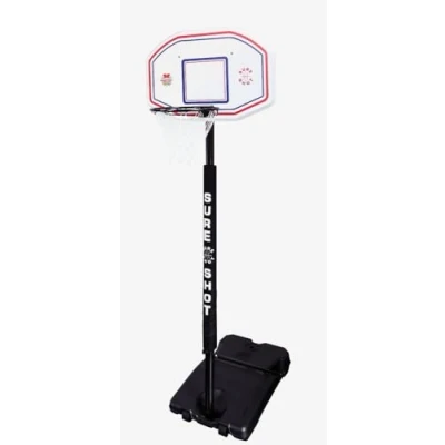 A lighter, lower cost transportable unit for school and home use Has a durable polypropylene backboard Rolls on 2 wheels for easy movement Ground stake for added stability Assembly instructions included
