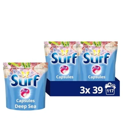Surf 3 in 1 Deep Sea Laundry Washing Detergent Capsules joy infused fragrance with natural essential oils lasting up to 12 hours wear for brilliantly clean results 117 washes (3x 39)