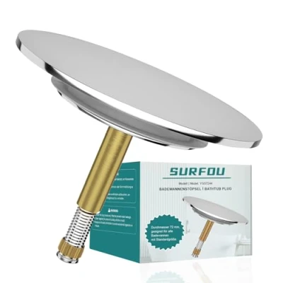 Perfect Fit: The bath plug replacement has a diameter of 72mm and a 44mm seal, compatible with most standard bathtubs. Easy to Install: Simply insert the plug into the bathtub plug drain and adjust the height using the metal screw for quick and easy installation. Chrome-Plated Cover: High-quality chrome-plated surface, durable and rust-resistant, maintains shine for years, adding beauty to your bathroom. Excellent Sealing: The flexible seal provides a reliable seal, preventing water leakage and allowing you to enjoy your bath stopper plug time without worry. Classic Design: Simple and elegant, suitable for both modern and traditional bathroom styles.